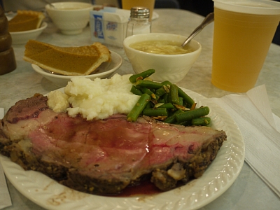 | やっぱりアメリカに来たなら肉デスヨネー! 柔らかくて良かったです。付け合せのポテトが取り放題なので、同じ炭水化物だからと思ってごはん代わりにして美味しく頂きました。でもいつも思うけど、そのケーキは明らかに余計。 |