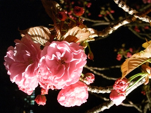 | 浜離宮庭園、春のライトアップ後半戦です。何故"後半"かというと、「染井吉野の並木+菜の花畑」という派手な方のライトアップは4月上旬に終了しており、今回は少し遅れて咲く「八重桜」のライトアップだから。前半戦は何度か行ったことがありますが後半に行くのは初めて。 | ||