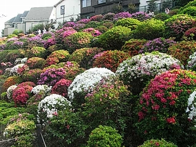 | まだまだ他にも種類があったんですが、これ全部つつじ。 本数も凄いけど、流石に園芸品種だけあって バリエーションの豊富さにマイッタ! これはいい。 |