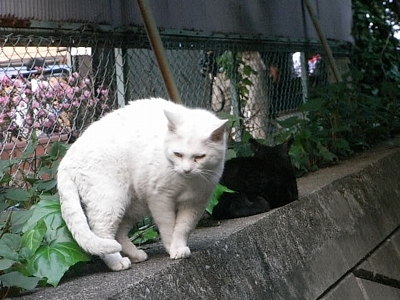 以前は商店街の階段上に駐車場があって、その辺が猫様たちのたまり場だったのに、マンションになっておった…。でも、マンションと階段の隙間でみんな元気にしてました。