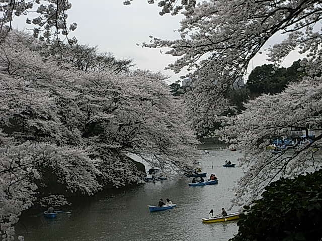 | なので昼からハシゴ決めてきました。やっぱり東京で桜って言ったら九段でしょ! もうちょっと晴れていればなぁ…! 普段は千鳥ヶ淵から入って、ボート乗り場のあたりで引き返すのですが、この日は東京商工会議所の下部団体が豪華なパンフを配っていたので、それに載っていた地図を元に北の丸公園までグルっと回ってみた。 |