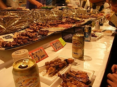 で、ゆっくり飲める場所といえば靖国の参道の方です。境内で酒を飲むためにはひと工夫いるけれども、こっちは堂々と飲めるのがありがたい。22時までは宴会もOK。