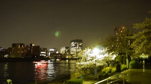 | ライトアップってわけじゃないですが、防犯上問題にならない程度の街灯があるので、夜桜も一応可能。屋形船なんかが通ると、結構雰囲気が出るかも知れません。 |
