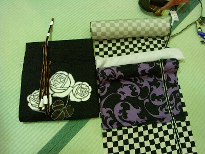 右下、帯をどっちにしようかなぁ…と迷ったときに撮ったものなんですが、結局バラ柄にした。市松大好き。これで3枚目の市松の長着ですが、斜めの市松は初めてなのでよしとします。
