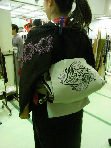 作家名「井尻学」、ブランド名「無学坐」。以前書いた「ゴスなモチーフの着物」についてまた師匠から動員がかかり、約1名やたらと似合いそうな友達のために写真でも撮るかなぁ…とノコノコ出頭したところ・・・