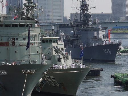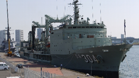 地元に寄港していた豪州海軍の補給艦「サクセス」と駆逐艦「バララット」、及びホストシップの海自護衛艦「DD-105いかづち」。オーストリア海軍のフネは何度も日本に来ているのですが、「日豪合同訓練」は今回が初めてだというのが少々意外な気がします。スマトラ沖地震の救済支援で一緒に働いたという記憶がまだ新しいからかも知れません。