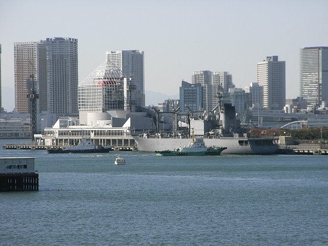 背景に見えてるのは晴海の旅客ターミナルと、汐留の高層ビル街です。