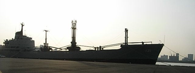 早朝ゆえ逆光で分かりにくいけどでっかいなコレ! 全長でも「はつゆき」より20m大きいんですが、後で排水量を確認したら桁違いに大きかったです。 |