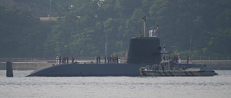公開の終わった「たかしお」が動いてました。潜水艦が動いているところはなかなか狙って見られないのでちょっと感動。しかし動いている潜水艦の「上」に立ちっ放しはちょっと怖そうだ。