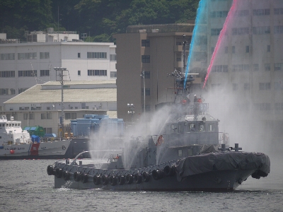 | 画像は放水デモ(今年は2色のカラー放水)及び、デモ終了後のお手振りをするタグボートと乗員の皆さん。お疲れさまでした。 あと残るのは観艦式くらいで、これで今年の関東エリアにおけるフネ系イベントシーズンはほぼ終了と思われます。次は秋の飛びモノ祭りですね~~同志の皆さんは横田でまたお会いしましょうv |