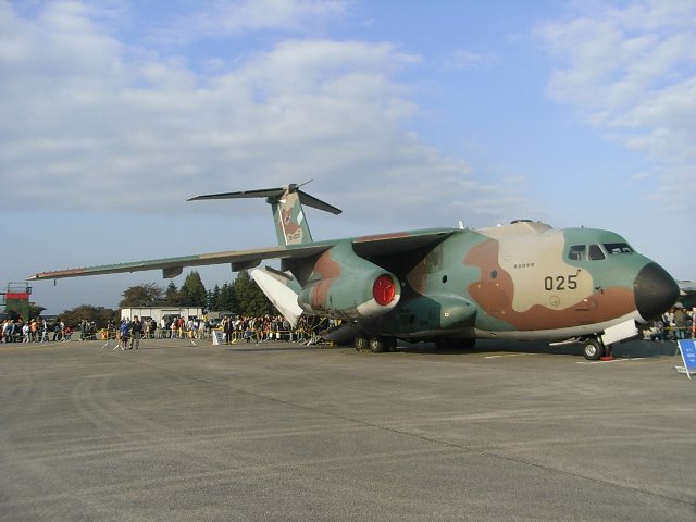 こいつは低空を低速でしっかり飛べることがキモなので、すごいローパスとか見せてくれるんだけど迫力があってイイですよ。それに意外と小さく旋回もできたりして、輸送機なのに、90度でロールしてるときなんか中の人や物ってどうなっちゃってるんだろう!?と想像して笑ってみたり。他にも習志野から第一空挺団を連れてきたり(もちろん落下傘降下デモ付き!)、低空&低速飛行中に後ろから2機目がフル出力で追い抜いてスピードの違いを見せてくれるデモなんかも、見たら本気で感動する。