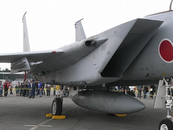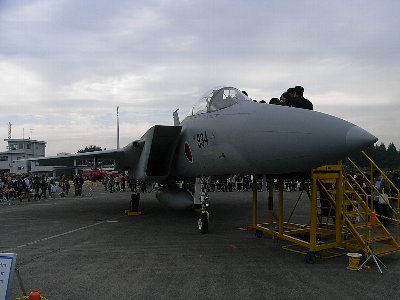 | コクピット解放に使われ、子供たちとカメコに群がられてもじっと耐えるF-15J。 健気なイーグル。 |