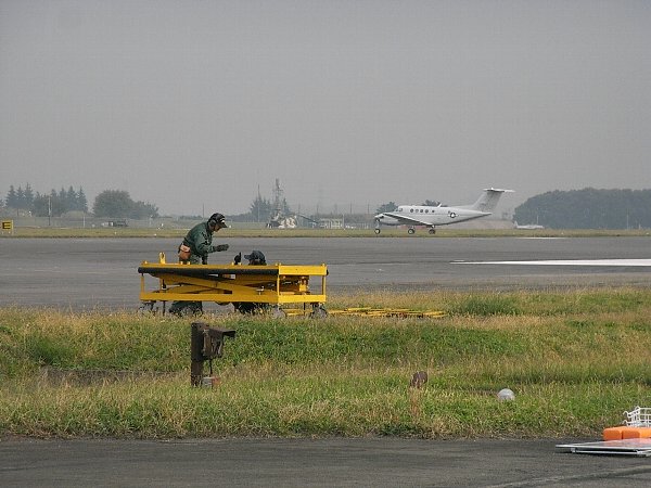 | (左)タキシングしてるC-12をカメラで追っていたら・・・ (右)ジャンケンじゃないよな? |