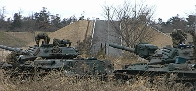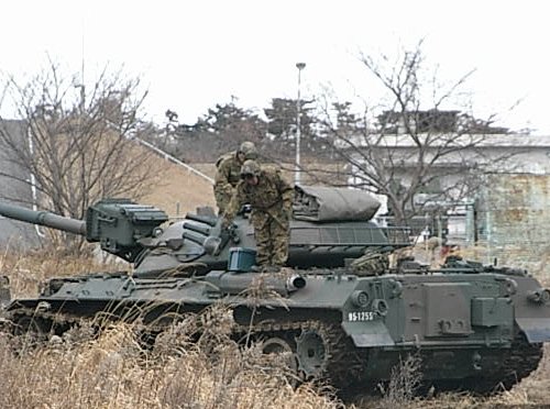 片付けられる74式たち。機械たちが余所行きの顔で展示されてるのでもなく、火力全開で暴れているのでもなく、こうやってごく普通に大事に使われている光景が何故か知らないけど凄く好きなんだ…。こいつらが傷付いたら私は泣く。だからこんなユルイ風景が、ずっと続くといいと思うよ。