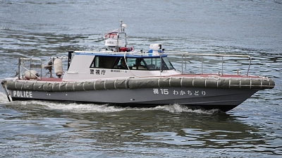 | 日本橋消防署の「きよす」と、警視庁の巡視艇「視15 わかちどり」が通りかかり。 赤白ツートンの消防、青白ツートンの海保と違って警察のフネは地味なので、気をつけて見ていないと見過ごすことが多いです。狙って見ようと思ったら、隅田川の華火大会の時くらいしか思いつかない…。この日は見られてラッキーでした。 |