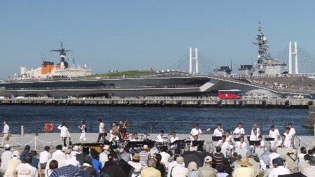 海上自衛隊・横須賀方面隊の音楽隊は、ごくごく真っ当なジャズのビッグバンドです。(大桟橋の向こうに「しらせ」と「きりしま」が見えている)