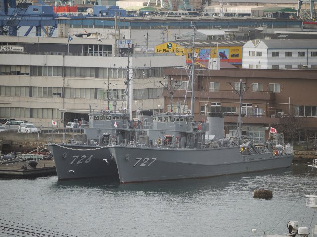 | 掃海管制艇MCL726「おぎしま」。 隣にいる727も同じく機雷掃海関係だと思うのですが、手元のどんな資料にも名前がありません。おnew? |