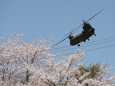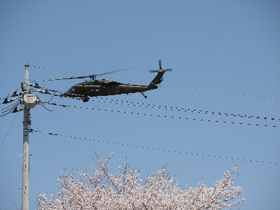朝霞の広報に貼ってあったチラシみたいに「満開の桜とヘリコのツーショット」が撮りたい!と息巻いていたのに、伏兵「電線」に邪魔されることに…orz 左からUH-60JA、AH-1S、CH-47J。OH-6Dは撮れなかった(´・ω・`) でもここの桜は本当にきれいです。詳しくは後半で。