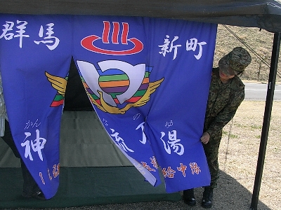 映画に出たりも。宣伝しやすいのか、設備展示は浄水セット、野外炊事セットなど後方支援隊ものものがやや多め。