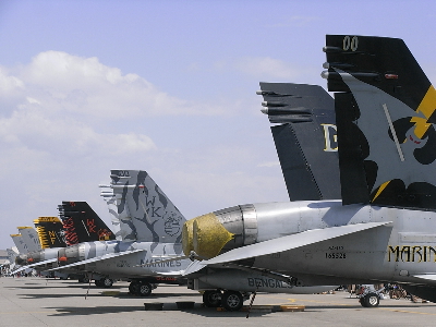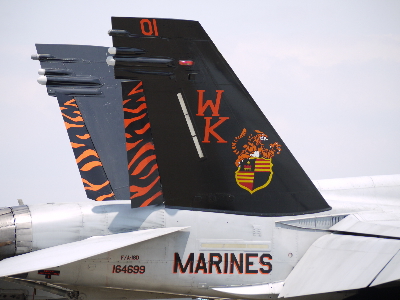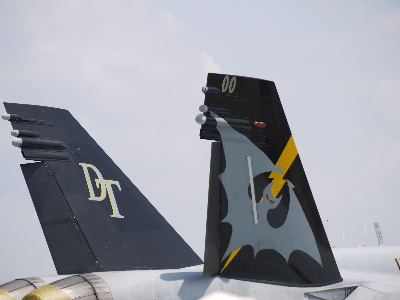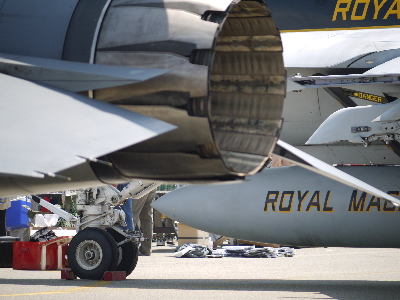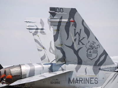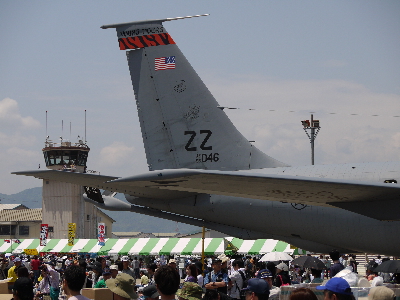 | 左はAvengers、ハリアー。 右、嘉手納のYoung Tigers(KC-135)。良く見るとヘッタクソな武者のペイント入り。その図柄は打ち首みたいでダメだと思うw |