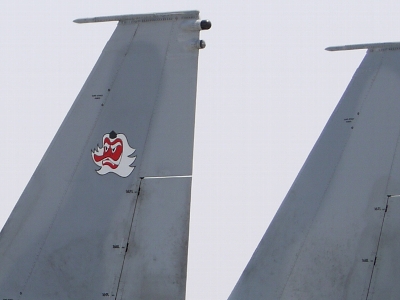 | JASDFもいるよ。築城の天狗さん(F-15J)と新田原のカエルファントム(F-4)。となりにいたT-4もカエルさんでした。 |