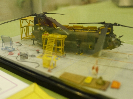 | 美術展と称して、写真やガンプラの展示コーナーありますがこれは凄くいいなぁ~。整備中のチヌーク、ジオラマ風味。 |