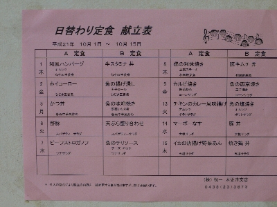 | 「メシマズ度は3軍一」という噂の陸さんの食堂では何が食されているのか? この食堂は外部委託なので普通に美味しいかも知れませんね。しかしA定食が「酢豚」、B定食が「天ぷら」とどちらもコッテリ系なので、選ぶ意味があるかどうか疑問ですw |