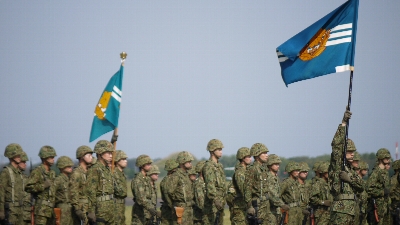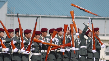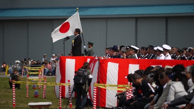 | 離陸の準備の間、武山の少年工科学校の生徒さんたちによるドリル演技あり。 |