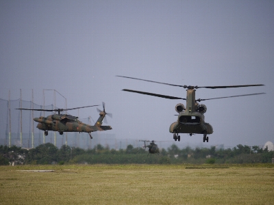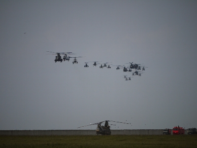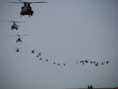 | チヌークを先頭に、次々に上空を通過。右下は珍しいピューマのおなか。 |