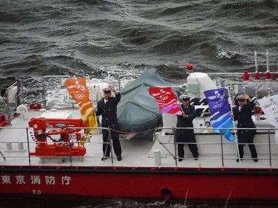 62回東京みなと祭/晴海会場 2日目。旧:水上消防署(臨港、日本橋、高輪の各署)による「水のページェント」、略称「水ペ」。→1日目の海王丸はここ。