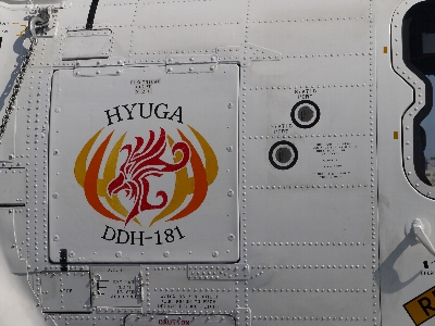 | 展示用のSH-60Jについていた「ひゅうが」エンブレム。 クレーンが乗っているのは一般の道路みたいに見えますが甲板です。広いよねえー |