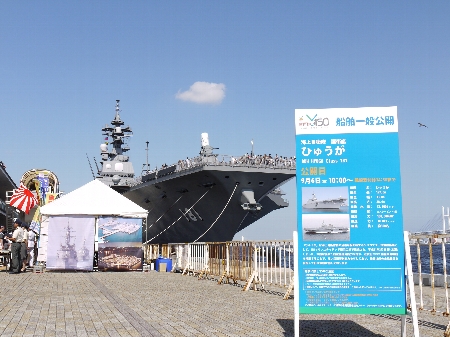 で、今回も「ひゅうが」基本的に格納庫と飛行甲板だけの公開なのですが、通称「トイレルート」に並ぶとちゃっかり艦橋内を覗けるというオマケ付き。でもかなりの列だったので、そこには並ばずに帰ってきました。ご馳走様でした。