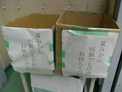 職員の誰かが、親戚のおじさんが送ってきたのを持て余して…という展開だと思ってその場ではスルーしたのですが、もしかして「種子島産でーす!」ってことだったら夢があるよ。だってこの時期に「夏みかん」って南の島でしか有り得ない。本当はどうなの?