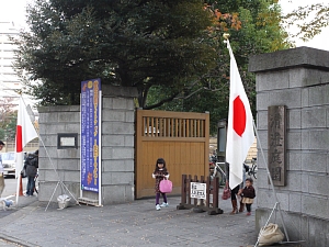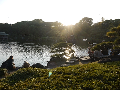 | 清澄庭園 正直、うちの魚のご飯を買いにいったついでに寄ったようなもんですが、「離宮」じゃないから恩寵ナントカとかいう長い名前にならないのがイイ(笑) 日の丸がかかってるのは祝日だったから。 |