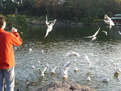 というわけで、なるべく効果的に麩を配布するべく、ピンポイント攻撃!とか、小さくちぎってたくさんバラまく飽和攻撃!とか工夫しながらゲームみたいにすごい燃えましたw