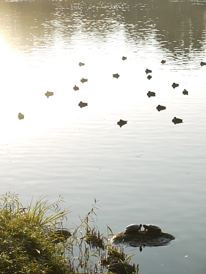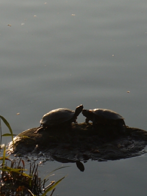 | キッシング亀(笑) ※右が拡大図w 逆光がキラキラ光る中、このまま数分間停止。どんなドラマなんだよw |