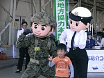 | 陸さんから東部方面隊の「あずまくん」が出張してる!と思ったら千葉限定キャラの「千葉衛(まもる)」君だそうです。どう見ても同じ頭です…。装備品のゴーグルとあずまライフル(仮称)がないくらいの違い? |