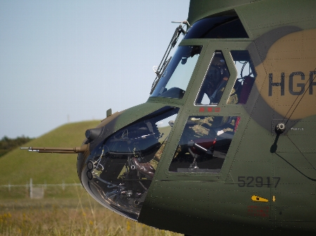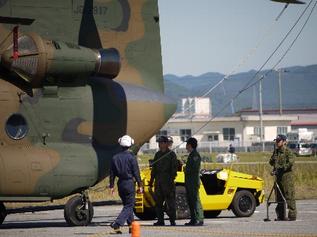 ふと振り返ると、すぐ後ろに展示してあったOH-6の担当の人が、OH-6のテイルローターが回っちゃわないように手で押さえていてなんだか和みましたw それくらいパワフルなんだなぁ、チヌーク。