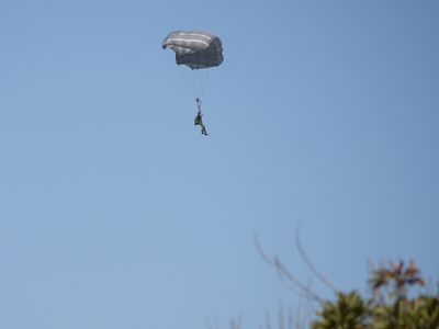 | そして並んでいる間に空挺降下デモが終わっちゃいました(笑)。さっき離陸したチヌークってこのために来てたのか~ |