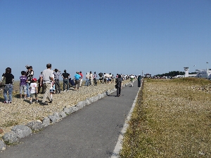 | JAL機の離陸に合わせて集まってくる静岡県民の皆さん(左)と、たった76席が埋まらないJAL機(右)。 |