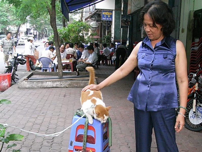 | 宿泊先近くにあった自転車屋のお母さんと「ニャオニャオ」。植え込みで寝てるところを起こされたので、ちょっと寝ぼけてる。連日遊んでくれてありがとう。 尚、滞在中見かけた全ての犬・猫の中で、リード(ビニ紐?)に繋がれていたのはこの子だけだったYO・・ |
