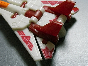 | おまけ: 主翼はここまで動くですよ。。。うわーんキモーい! あのロシアのゲテモノ機みたいー。おいらは前進翼機の良さって全然わかんないんですけどね(泣) |