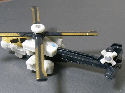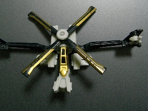 動くところは肘のみ。あと、ローターは2つとも回転する。ロボになったとき、ナンバーもディセップ章も正面を向くところは褒めてあげたいと思います。