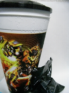 ワーナー・マイカルシネマ限定:トランスフォーマーリベンジフィギュア付きカップです。過去記事において「EZコレクションと同じかなぁ~」などとボケまくった発言をしたのですが、その後どうしても気になってきたので「調べる手間より買って確認」第二弾を発動しました。因みに第一弾はこれ。