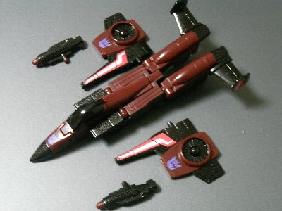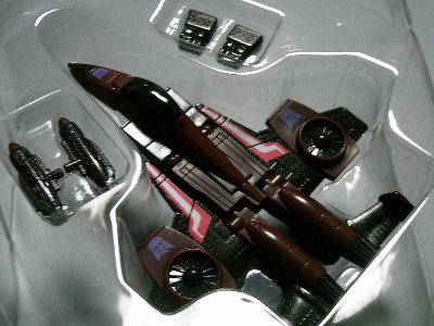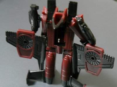 | 足首を引き出し、手首とミサイル&主翼を再装着して完成! 一応、腕が動きます。無理すると取れるけど! |