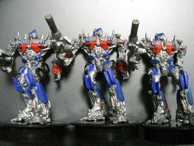 後者の方が安いし、タカトミ/Hasbro版が棒立ちなのに比べて、特にディセップの二人は変なハンサムポーズになっていて笑うw 但し、前者のオプティマスは画像が伏せられているだけあって(?)普通にカッコイイです。映画見た記念という意味ではこっちの方がいいかもね。劇場でもやっぱりOPが一番売れてました。