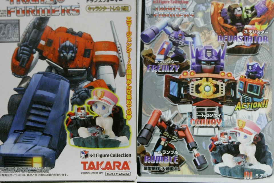 さて、一昨日のエントリで書いた食玩まみれのコンビニにおいて、かつて棚の一番下で燻ってたこんなのを掘り起こしました。海洋堂「K-T Figure Collection:超ロボット生命体トランスフォーマー」。会社の近所で飲んだ帰りだったため、酔った勢いで一気にサルベージ。しかしそのまま忘れてしまい、開封したのがごく最近であったという。今更ですが語ります。
