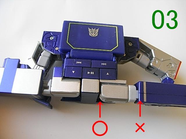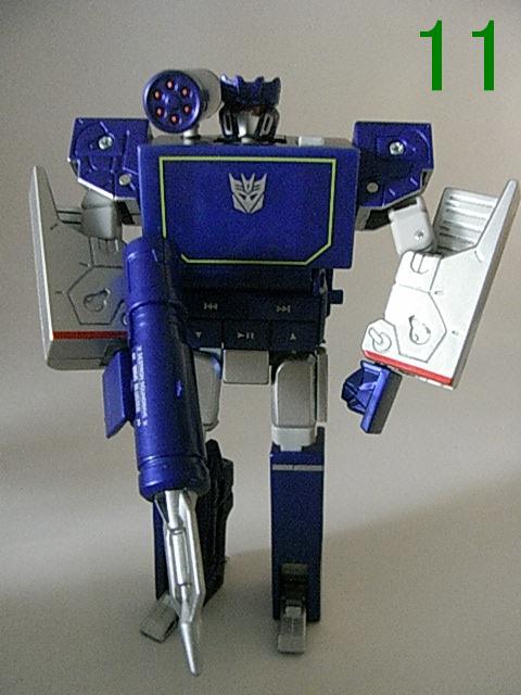 さて、いよいよサウンドウェーブさんをロボットモードにしてみますよ。劇中の変形にかなり忠実…とは言っても元々他にやりようがないだろ!と思うくらいシンプルなので、慣れれば目ェつぶってでもOK。