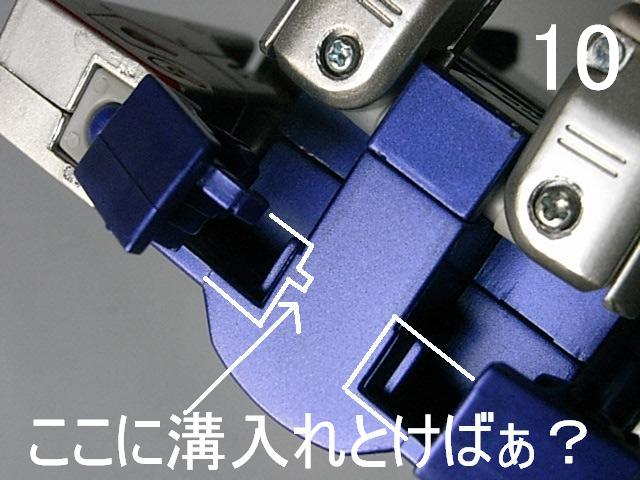 何故にデフォルトが「グー」型かというと、カセットデッキ型に戻したときにきちんと収まるためになのですが、だったら最初っから右手はガン持ち、左手はイジェクト用の手にしておいて本体側に出っ張った指の分の溝でも入れとけばいろいろ解決するのにと思った。(画像10の白い線参照) その分、換えパーツとかなくていいから。