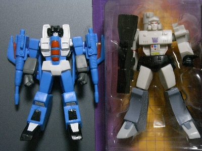 | 詳細はこんな感じですが、如何なものでしょう。>持ってる方 メガトロン卿の脛のモールドとか、SWさんのカセットの蓋が半透明なあたりに芸の細かさを感じます。 |